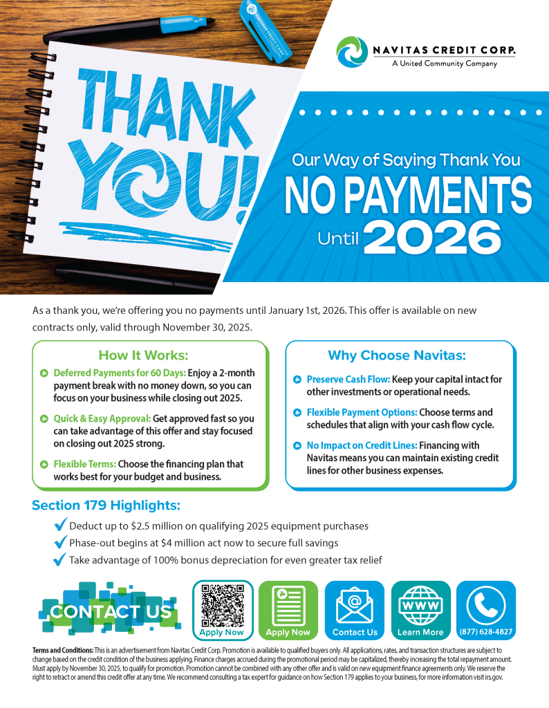 We are affiliated with Navitas. Navitas, a direct lender, offers competitive loan options, start-ups welcome, and flexible terms from 12-72 months to fit your needs!