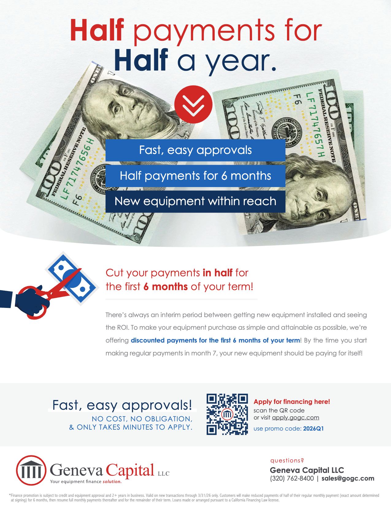 Financing affords you the option of getting new equipment now and paying for it in small manageable payments.